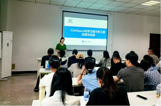 2025年9月25日下午,开元集团网站在笃行楼四栋102教室举办“CiteSpace科学文献分析工具应用与实践”专题讲座。讲座由副院长胡彩凤主持,朱晨博士担任主讲,学院青年教师及全体研究生参会。