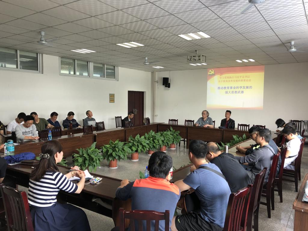 2018年4月19日,在体育综合楼四楼会议室,开元开展学习贯彻执行习近平关于教育改革发展的重要论述活动,由漆勇书记组织全体教职工学习讨论“推动教育事业科学发展的强大思想武器”(中国教育科学研究院)一文。