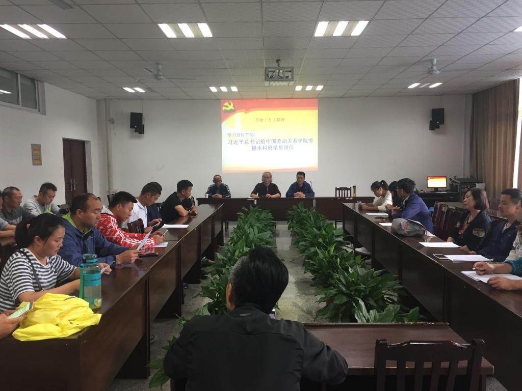 2018年5月31日下午,开元组织全体教职工学习“习近平总书记给中国劳动关系学院劳模本科班学员回信”,会议由漆勇书记主持。