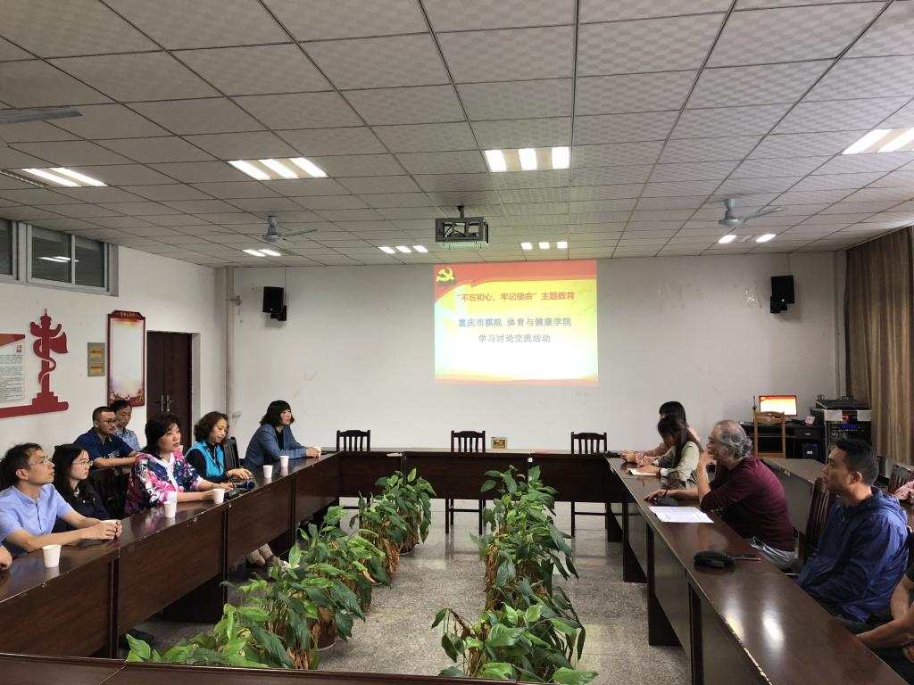 2019年9月20日下午,重庆市棋院来开元进行“不忘初心、牢记使命”主题教育学习讨论交流活动,会议由漆勇书记主持,参会人员有重庆市棋院柯萍院长等12位来宾,开元部分教职工参加。