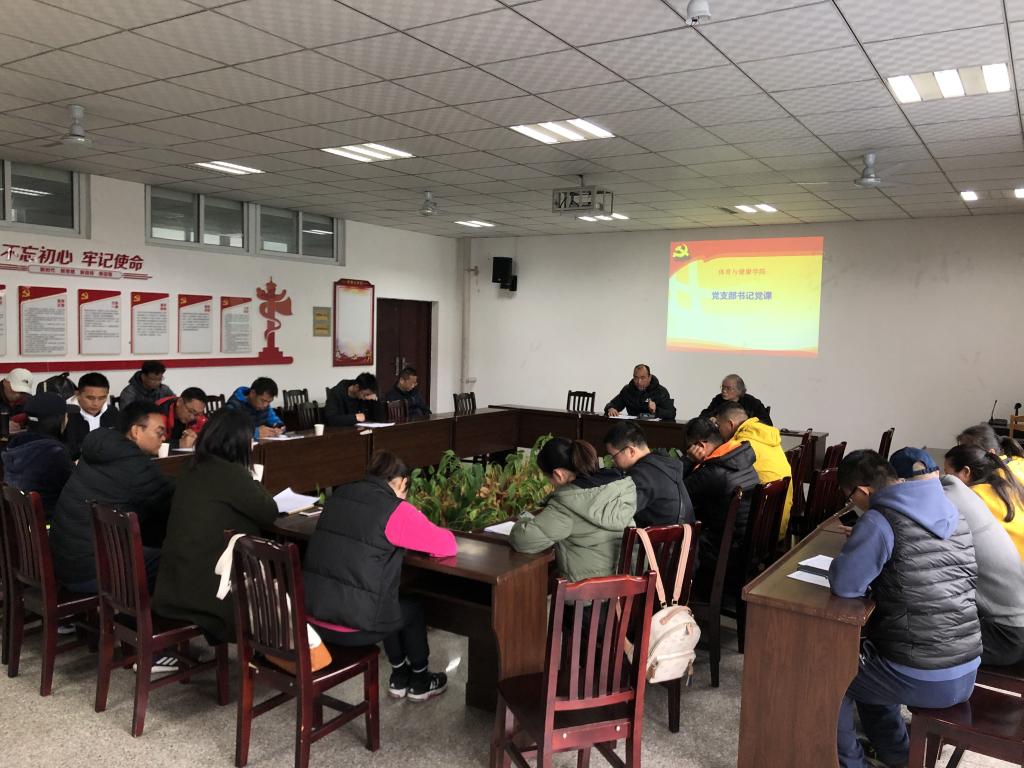 2019年11月21日,在学院会议室,开元教工支部书记何兴权同志给全体党员讲党课。