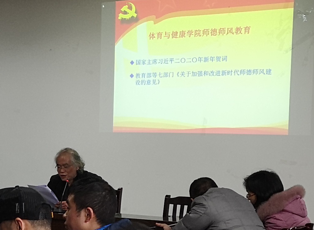 会议宣读了《国家主席习近平二〇二〇年新年贺词》,学习讨论:教育部等七部门《关于加强和改进新时代师德师风建设的意见》。