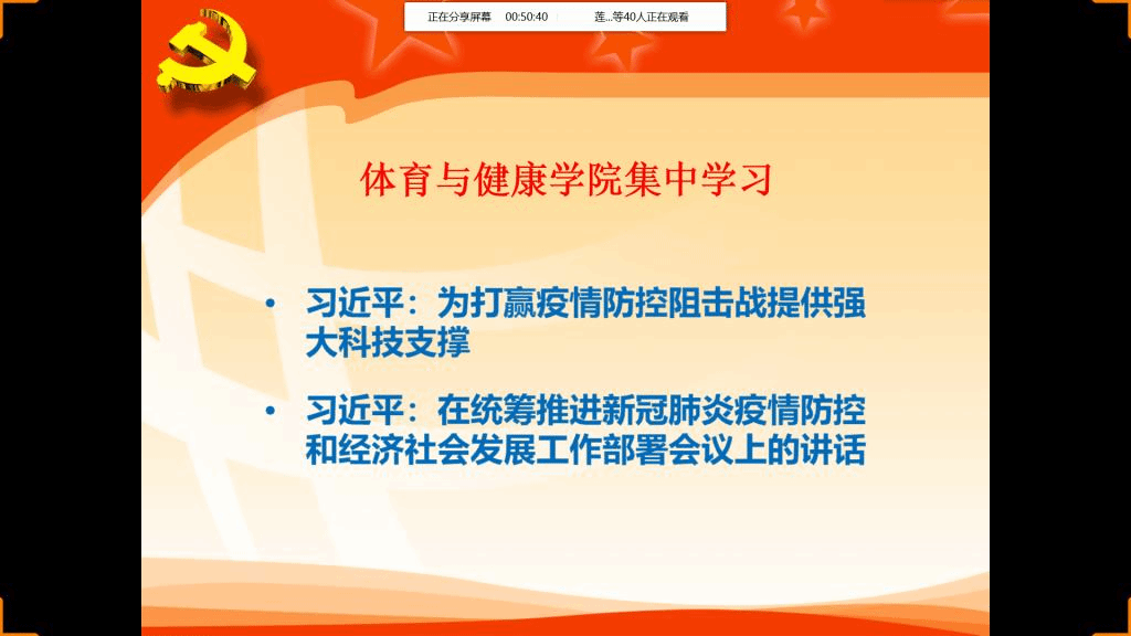 5月13日开元召开视频会议,学习习近平总书记疫情期间重要讲话,由漆勇书记主持,全体教职工参加。