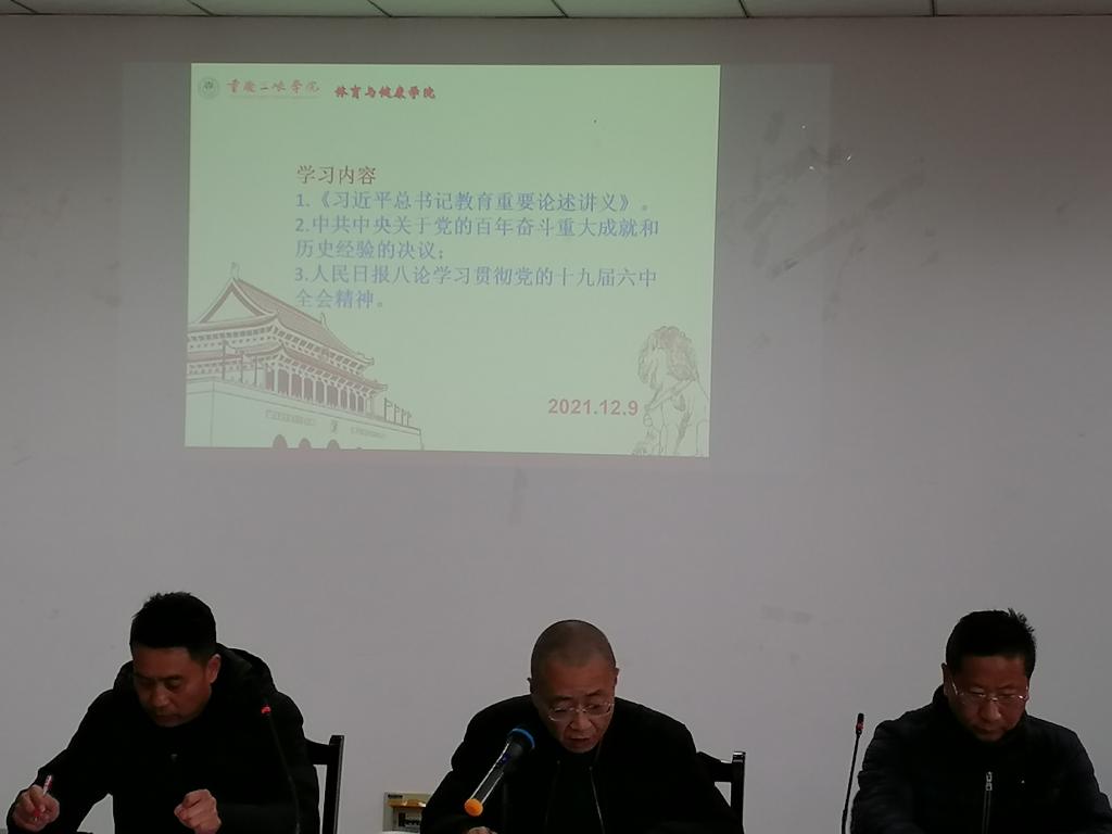 2021年12月9日,在学院会议室召开政治理论学习会议,会议由总支书记杨岳主持,全体教职工参加。