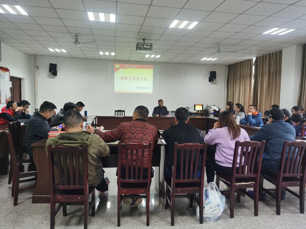 2022年3月31日,开元集团网站于体育综合楼410会议室召开了教职工党员大会,会议由学院副院长黄健主持,开元全体教职工党员参会。