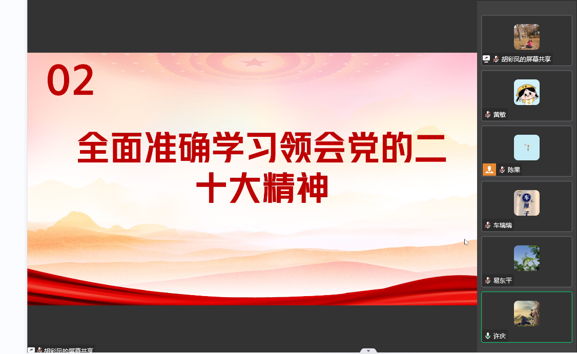 2022年11月25日晚19:00,开元集团网站党总支通过企业微信,线上开展了11月主题党日活动——“深入学习党的二十大精神,培养新时代体育人才”主题活动,全体党员参加,会议由教工支部书记胡彩凤主持。