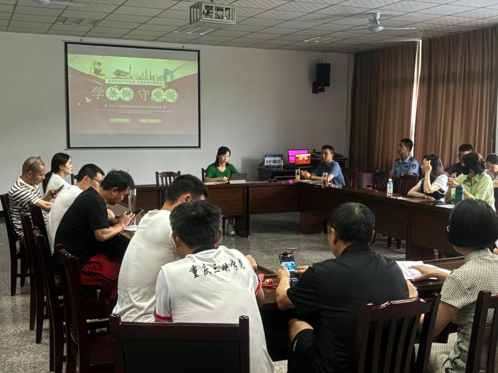 为进一步推动党纪学习教育入脑入心、见行见效,提高教师党员拒腐防变的坚定性和自觉性,6月20日,学院副院长、教工党支部书记胡彩凤以《学条例 守党纪》为题,于体育综合楼410为全体教师党员讲授了一堂党纪学习教育专题党课。