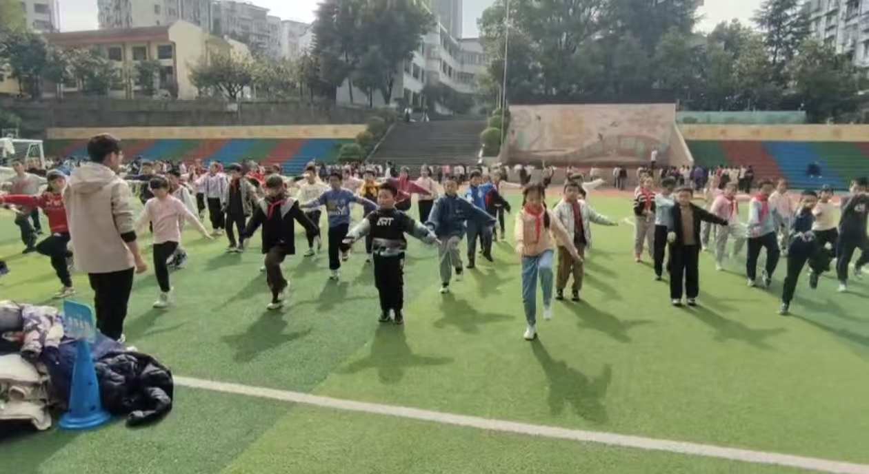 2025年3月14日,开元集团网站党员学生走进万州区百安小学,开展七彩阳光体操教学活动。