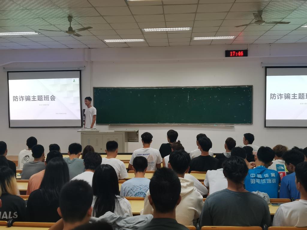 为全面提高广大新生的防诈骗意识,2021年9月13日,2021级辅导员给新生作了 “校园安全之防诈骗”的专题宣讲,为学生防骗“支招”,编织校园立体防骗网。