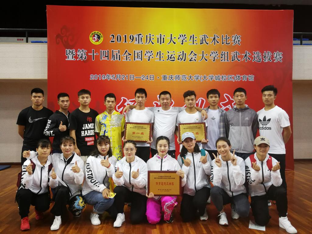 2019年5月20至24日,由重庆市教委主办的“2019年重庆市大学生武术比赛暨第十四届全国学生运动会大学组武术选拔赛”在重庆师范大学举行,24所高校参赛,参赛人数达到330人左右,比赛分大学组的普通院校组(甲组)、高职高专组(乙组)和体育专业组(丙组)。