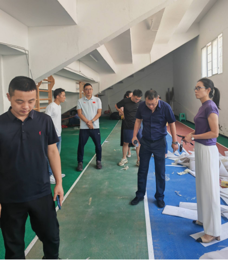 9月2日上午,体育与健康学院组织开展运动场室内训练跑道验收工作,学院冉金鑫书记、刘铮副院长、刘建宇副院长、各系部主任、纪检委员以及项目施工单位负责人参加。