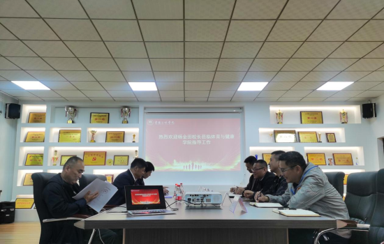 学院副院长刘铮代表学院欢迎杨校长、贾教授一行莅临学院调研指导工作,介绍了学院整体情况及发展思路,汇报了正在重点推进的运动训练专业申报工作,并谈了面临的主要困难和问题。