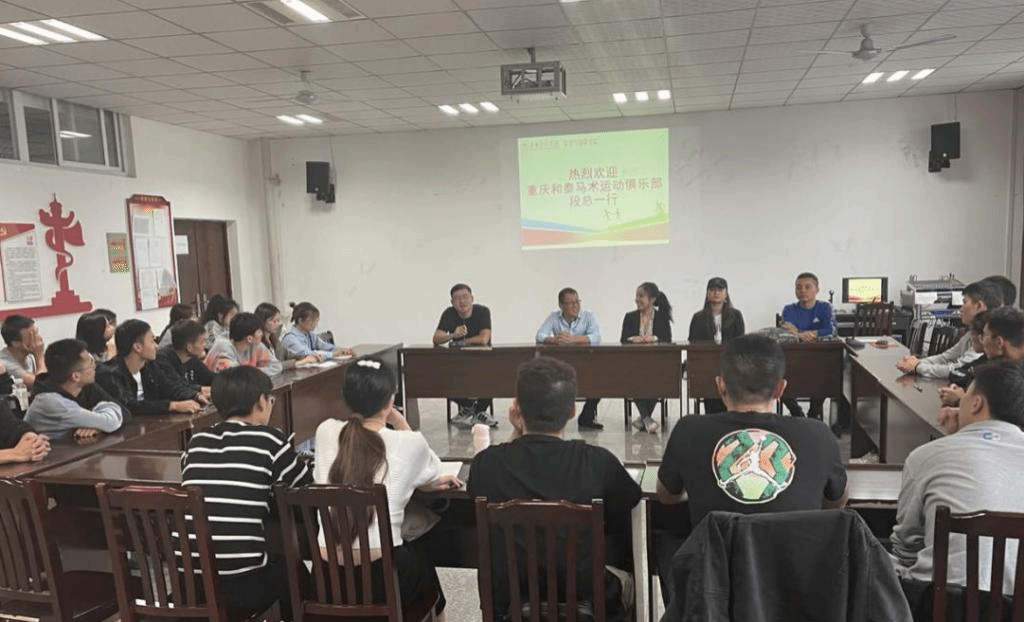 刘铮副院长首先代表开元集团网站欢迎重庆和泰马术运动俱乐部段总一行,简要介绍了开元办学概况及运动人体科学专业学生实习相关情况。并向在座的2019级运动人体科学专业同学介绍了重庆和泰马术运动俱乐部,这也将是大家明年的实习基地之一。