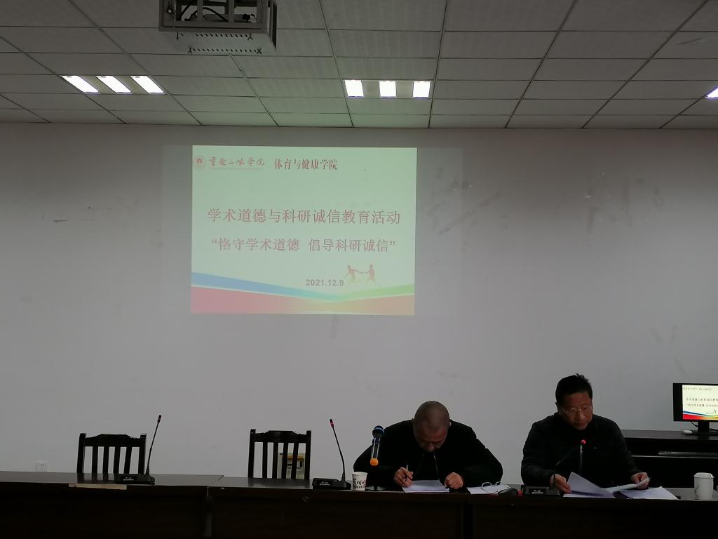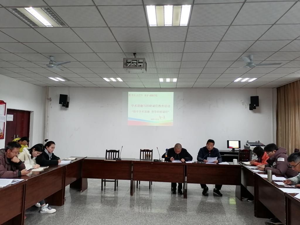 2021年12月9日,在学院会议室召开以“恪守学术道德、倡导科研诚信”为主旨的学术道德与科研诚信教育大会,会上黄健副院长宣读了相关文件,要求全体教师恪守规范,诚信科研,以正学术之风。